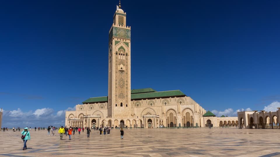 Casablanca combina modernidade e história em atrações como a impressionante Mesquita Hassan II à beira-mar. Descubra o charme Art Déco no centro da cidade e aproveite os mercados vibrantes, cheios de artesanato e especiarias. Na região, visite as vinícolas de Benslimane para degustar vinhos locais e explorar paisagens deslumbrantes.