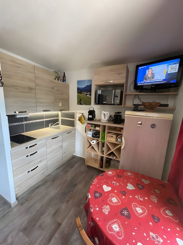 Located in Abondance, this renovated 25 m² apartment welcomes up to 3 guests in the peaceful hamlet of Richebourg, in the heart of the beautiful Abondance valley. There is a cabin bedroom with a double bed and a living room with a sofa bed. The fully equipped kitchen, TV, and mountain views ensure your comfort. Families will find a baby bed and high chair available, and self check-in makes your arrival easy.