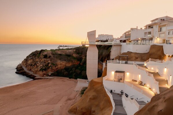 T1+1 apartment situated on the 6th floor of a building with three lifts, two of which are panoramic, in the centre of town with stunning views over the fisherman's beach and the city of Albufeira.
