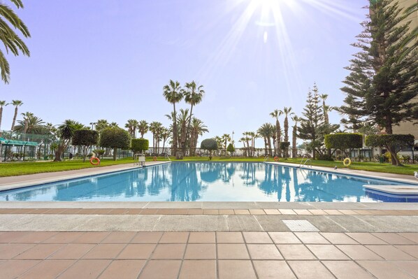 Este apartamento na praia conta com um parque aquático e oferece diversão para toda a família