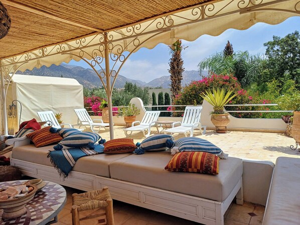 The great advantage of this property when we stayed in September was that we had sun every day, but Agadir had fog every day. Since the house is inland by several kms the weather was better. Great house with lovely outdoor spaces to relax. Plan on bringing soap, toilet paper, spices etc. Kaltum’s cooking was great and her fresh bread and ghraif in the morning were delicious. A wonderful relaxing place.