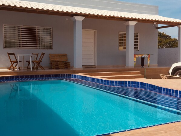 Sim, esta propriedade tem uma piscina.