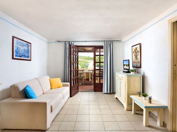 "Bougainvillae Mono", 1-room apartment 30 m2. Bright, beautiful furnishings: living/sleeping room with 2 sleeping facilities, dining table and satellite TV. Exit to the terrace. Small, open kitchen (2 hot plates). Shower/WC. Air-conditioning, forced-air heating. Balcony or terrace. Balcony furniture. Facilities: safe, baby cot. Internet (WiFi, free). IT090006B4000E0017