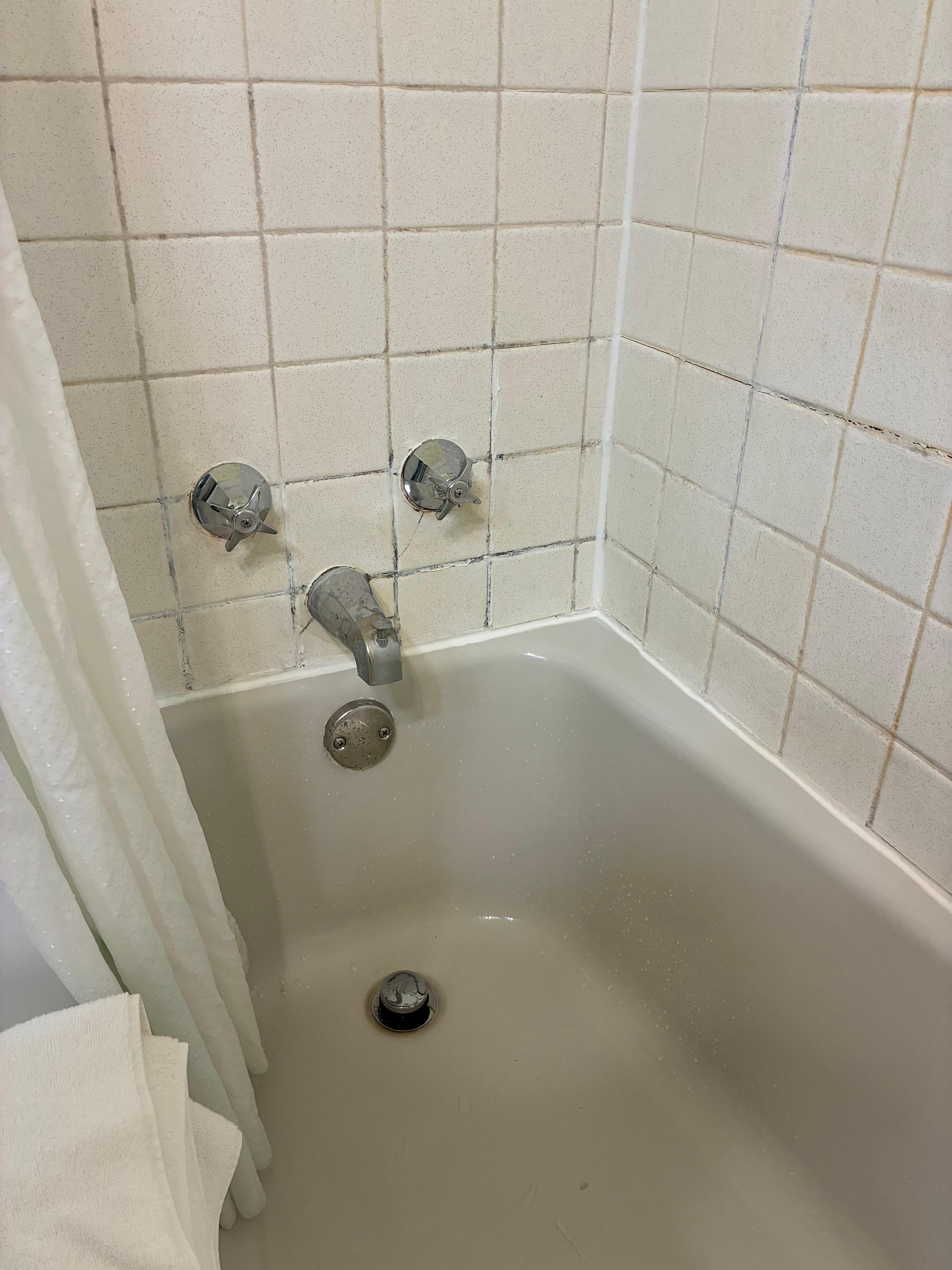 The entire motel is run down and dirty! The first room we were given had an unassembled AC unit on the floor next to the bed. The second room did not have running water. We went to the office again and were told that there was a pollution problem a few months ago, so just let the water run. We asked for a bottle of water to brush our teeth. They told us they don’t provide water to guests that we could go up the street to a store! We opened the tap when we returned to the room and the water came out in a trickle and it was brown! We booked a nonsmoking room but unfortunately it was connected to a smoking room and the smell came right under the door. We stuffed a towel along the door bottom but it wasn’t much help. The TV remote control literally stuck to your hand! The sheets appeared okay, so we got our own water, spent the night and then left early in the morning to go find somewhere else to shower. Do NOT believe a single review that says anything positive about this place. Everything is misrepresented on the website and the staff is unprofessional and lacking in even the smallest amount of customer service.