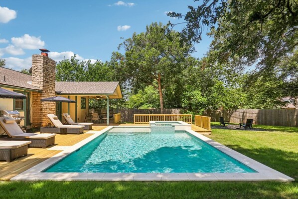 - Heated Pool – Swim any time of year in your private backyard oasis