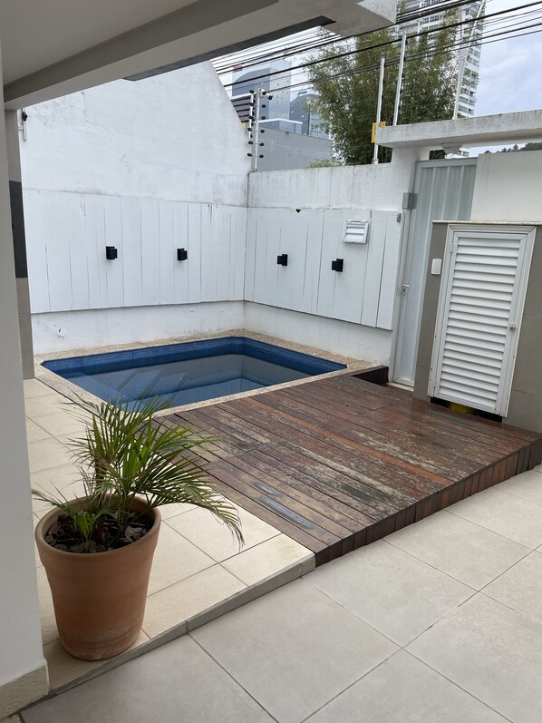 Esta casa de temporada tem piscina externa e fica perto de Praia Brava.