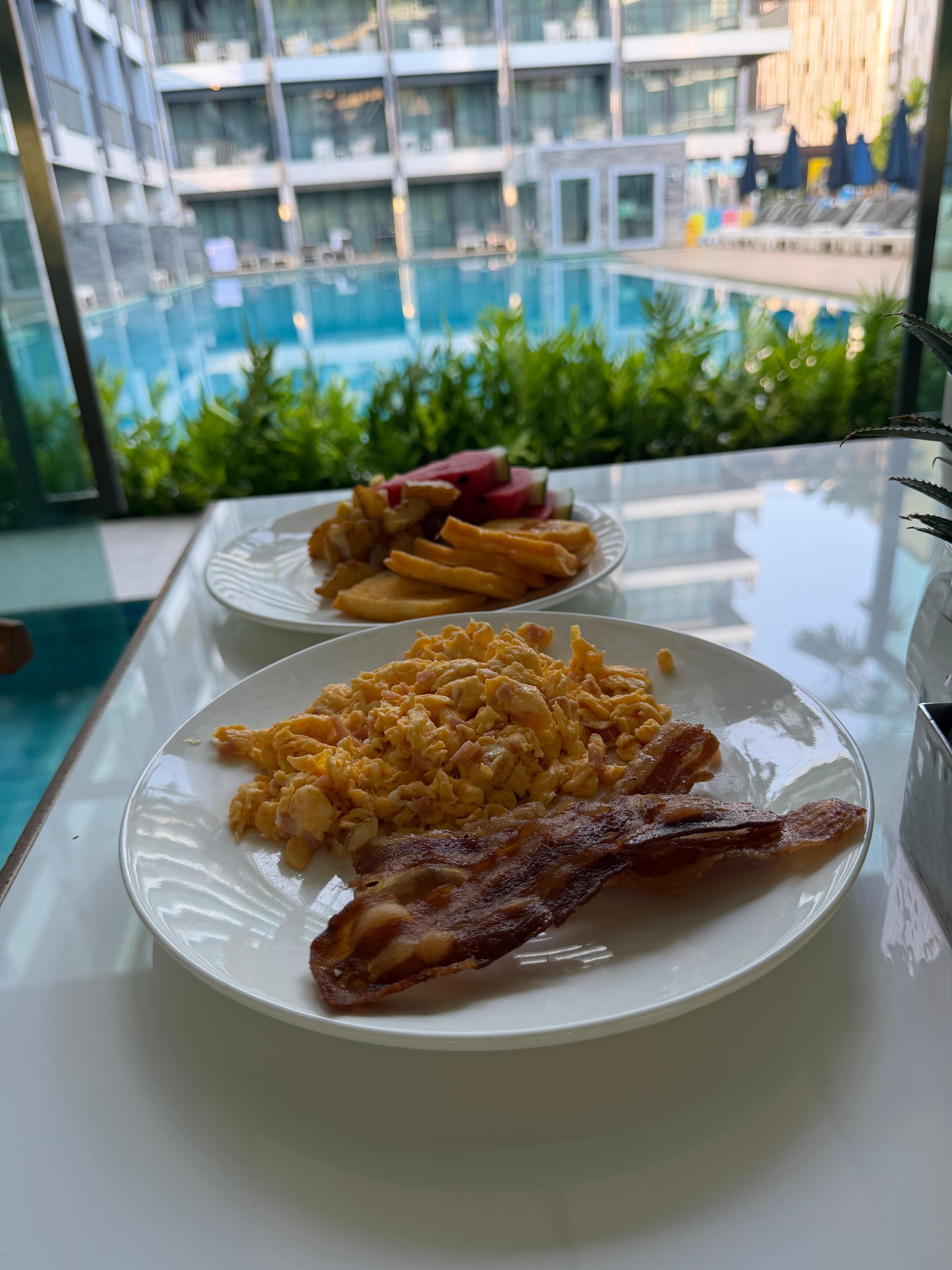 Breakfast? Absolutely knocked it out of the park. We dined poolside and the selection was incredible… pastries, fresh fruit, made-to-order omelets and scrambled eggs, juices, coffee, tea, cheese, meats… honestly, I can’t even list it all. It was THAT good.