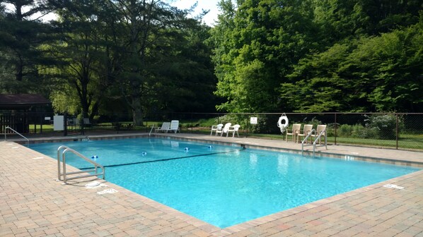 The master bedroom is on the 1st floor with a queen bed, full bath (double sinks), ceiling fan and a small flat screen TV. The kitchen is also on the 1st floor, fully stocked with dishes, silverware, pots/pans, coffee maker, blender and more. The family room has a flat screen TV with cable/wifi, wireless internet, a propane wood stove and a ceiling fan. Upstairs is the 2nd bedroom with a queen bed and ceiling fan. There is a full bath (double sinks) in the hallway. The 3rd bedroom has 2 twin beds and a half bath.