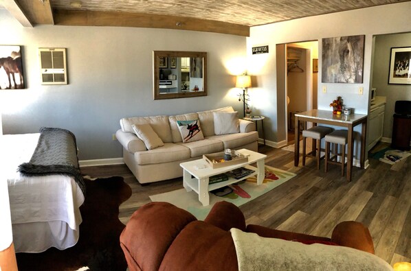 Fully remodeled studio condo on Sugar Mountain in the Sugar Ski and Country Club. This condo has everything that one could want from breathtaking views of the mountains, cozy electric fireplace, full kitchen, and access to everything the High Country has to offer. The condo is conveniently located on top of Sugar Mountain Resort off Oma's Meadow with Ski in Ski out ability. Ski in the winter, mountain bike and hike in the summer, watch the color change in the fall, or just enjoy one of the many festivals in the near towns.