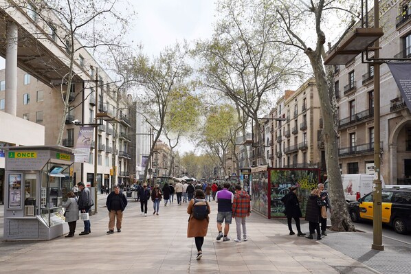 Este apartamento com cozinha fica a poucos passos de La Rambla