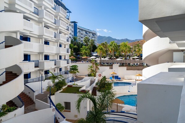 The holiday apartment Beach Escape with Pool and Parking, which is situated in Benalmádena, overlooks the Mediterranean Sea. The 45 m² property consists of a living room with a sofa bed for 2 people, a kitchen, 1 bedroom and 1 bathroom and can therefore accommodate 4 people. Additional amenities include high-speed Wi-Fi (suitable for video calls) with a dedicated workspace for home office, a TV, air conditioning as well as a washing machine. A baby cot and a high chair are also available. The building in which the accommodation is located has an elevator. This property features a private outdoor area with both an open terrace and a balcony.