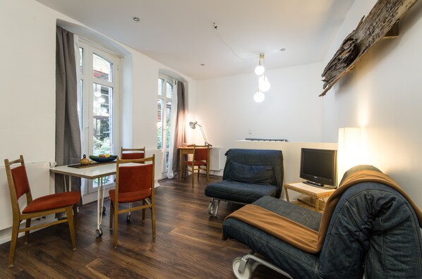 An dieser Wohnung scheiden sich die Ansichten: Lage ist super, Wohnung wirklich ruhig, frisch saniert mit moderner Ausstattung und freundlichem Gastgeber. Leider mit Kellerflair. Den Geruch bemerkt man schon an der Eingangstür und da hilft leider auch kein Lüften. Der Schlafraum ist im aushebauten Keller über eine sehr schmale Wendeltreppe erreichbar. Wer geruchsempfindlich ist, kann hier weder essen noch schlafen. So ist mein Mann nach einer Nacht früher abgereist und es wurde nichts aus der zweisamen Woche in Berlin. So können wir die Wohnung niemandem empfehlen, der den Geruch nicht ausblenden kann. Man sollte nicht jeden Raum als Wohnraum ausbauen, schon gar nicht zu diesem Preis.