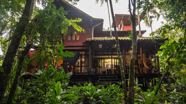 De frente para o rio, esta casa de temporada dispõe de cozinha e sacada