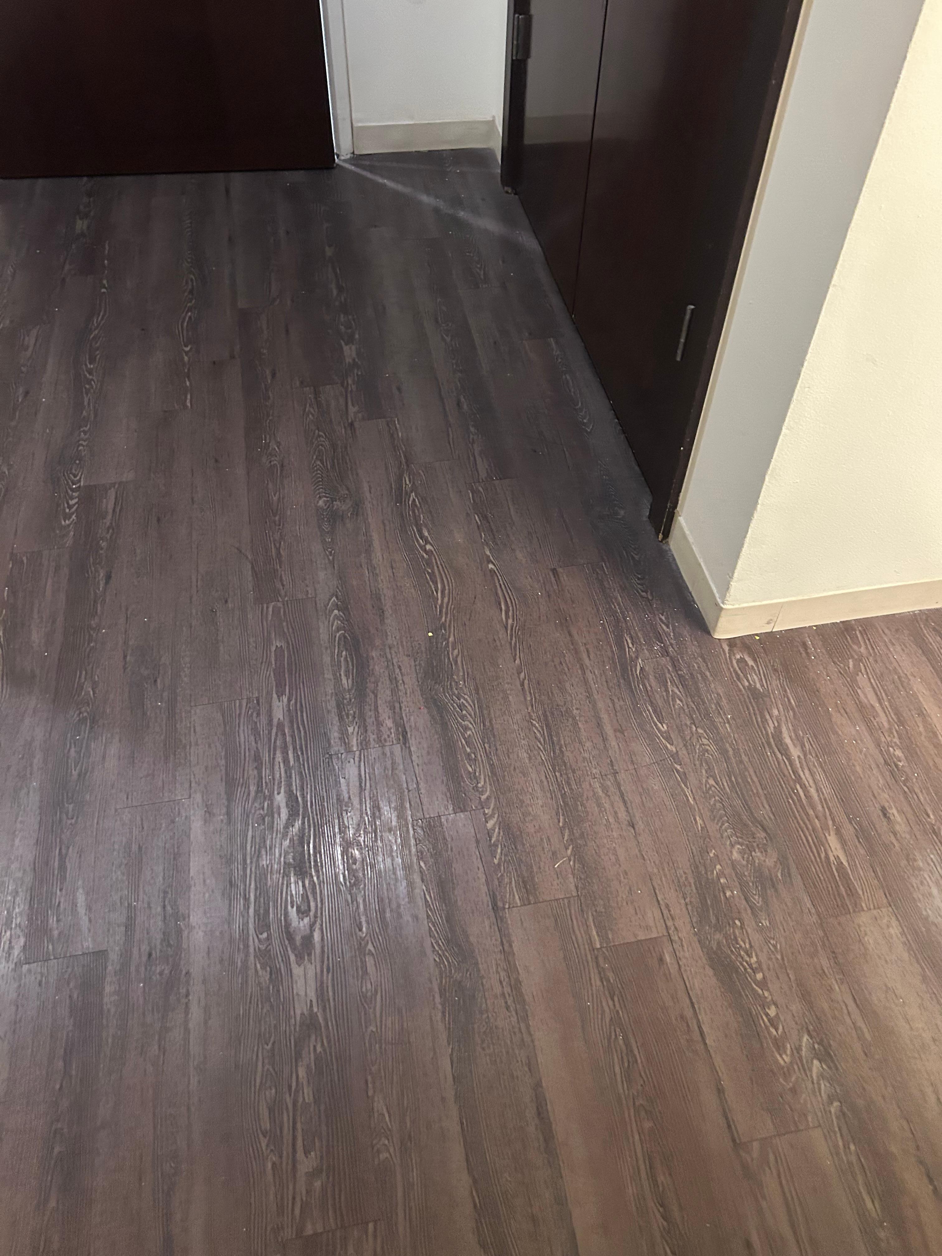 The shower door was out of alignment and would not close all the way (about 6 inches) so that water sprayed out on the floor outside.