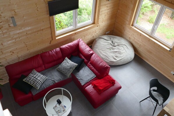In the quiet town of Waldorf, part of the municipality of Blankenheim, you have a holiday home, completed in 2020, with 150 sqm of living space + approx. 2,000 sqm of land with old trees and a large meadow. We offer you a bright, spacious 50 sqm kitchen-living room with a clear view of the countryside. The eat-in kitchen is fully equipped with a dishwasher, freezer and refrigerator combination, oven and ceramic hob. A large dining room table and a counter attached to the kitchen offer enough space for a larger number of people. The house has 2 separate bedrooms, each with a double bed and another 4 sleeping spaces on the open gallery. There are also 2 separate bathrooms, each with a shower or a bathtub. Ideal for staying with 2 families. In addition, the attractive barrel sauna in the garden invites you to relax and end a day of vacation.