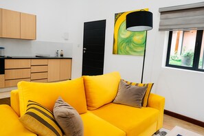Estúdio básico, vista para o jardim
