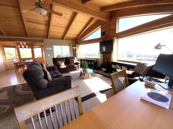 Plentiful windows make this bright, inviting, well appointed, remodeled home a gem. 180 degree views of California's magnificent coast and of the Bodega Bay.
