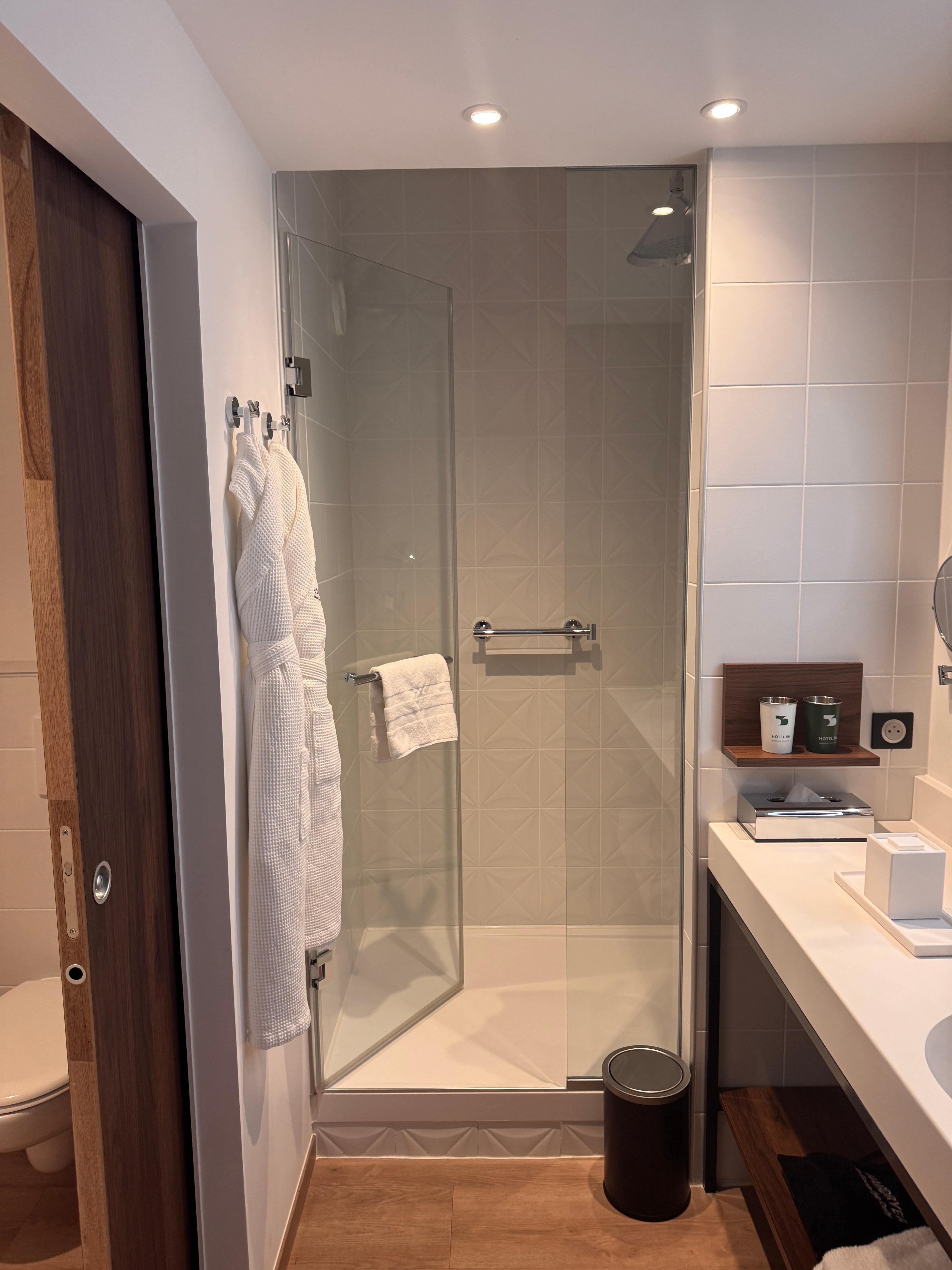 Salle de bain très bien aussi, serviettes et peignoirs de qualité, ainsi que les produits à disposition (savon, gel corps et cheveux, conditionneur et lait corporel).