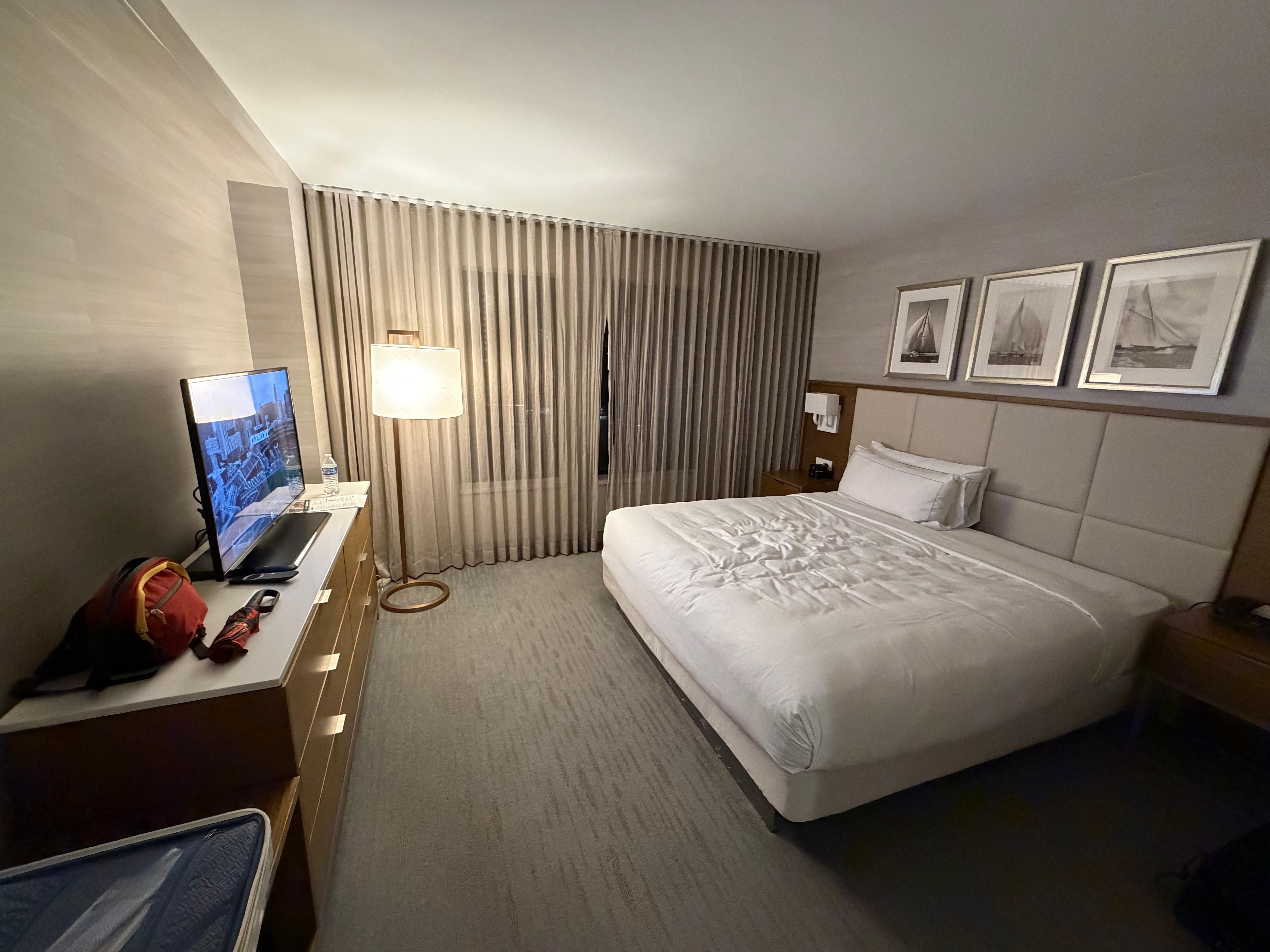 Room is huge. Bed and pillows are comfortable. HVAC on the noisy end when kicked in. A little noisy from the traffic on the roads by the riverside.