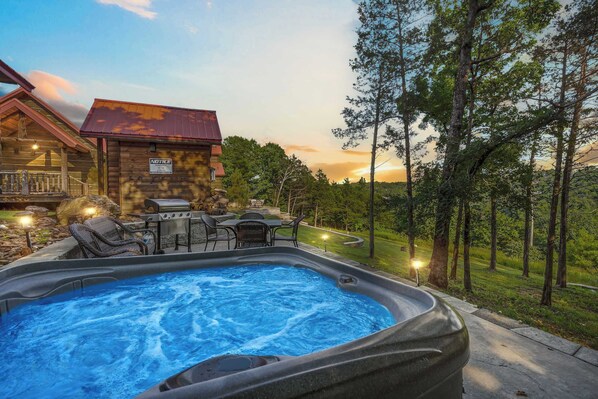 Step outside onto the private patio and soak in the fresh Ozark air. Enjoy alfresco dining at the table for four or take a long, soothing soak in the hot tub as you admire the mountain and tree-lined views that stretch out around you. This is more than just a place to stay—it’s a peaceful retreat where comfort, scenery, and convenience come together.