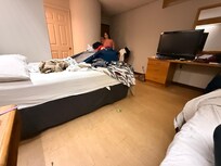 When we walked into the building, in spite of the NO Smoking signs posted everywhere, the entryway and sitting area reeked of marijuana and cigarette smoke, as well as several young men sitting around vaping. I am severely allergic to cigarette smoke and was assured that all rooms were NON-Smoking, so we went ahead and checked in. When we went upstairs, the hall was fine, but when we entered the room, the smell of cigarette smoke was so strong that I immediately started having a reaction. (There was also the cockroach climbing up the wall that freaked my kids out.) We went back downstairs and checked out. The manager was really sweet about refunding our money because her Mom is also allergic to cigarette smoke and assured me that the bug situation would be taken care of immediately. That said, I do feel for them because you can post signs everywhere, but if guests are determined to smoke, there is nothing you can really do about it