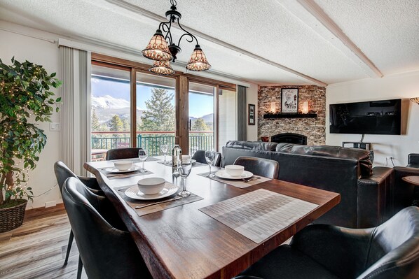 After a day of exploring the stunning outdoors, sink into the one of the two couches in the beautiful living room. Whether you're watching a movie on the large flat-screen TV, using the DVR, or immersing yourself in a good book with a cup of hot cocoa, the gas fireplace will envelope you in a comforting warmth, making you feel right at home. On sunny days and during the exquisite summer months, step outside onto your private deck and marvel at the unique mountain views that surround you.
