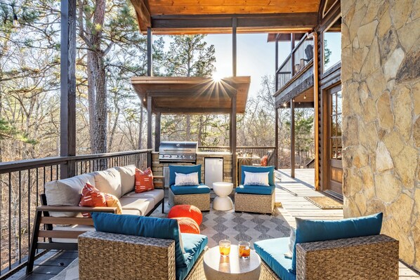 Start your mornings with coffee on the deck overlooking peaceful forest and creek views. ☕🌅 Spend afternoons poolside. 🏊♂️ End evenings under the stars around the fire. 🔥✨