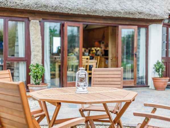 Bathroom: (2 Steps), Bath With Shower Attachment, Cubicle Shower, Toilet. Underfloor heating, electricity, bed linen, towels and Wi-Fi included. Travel cot and highchair available on request. Outbuilding with freezer, washing machine and tumble dryer. Front courtyard with garden furniture and barbecue. Large, rear enclosed garden with picnic table. Two well behaved, small dogs or one medium dog allowed on request. Private parking for 2 cars. No smoking.. Aurora Barn offers a truly unique opportunity to stay in a traditional thatched cottage with all modern comforts inside. Nestling amid the beautiful scenery of the Cornish countryside and full of charm, character and luxurious detail. Aurora Barn accommodates up to four guests.