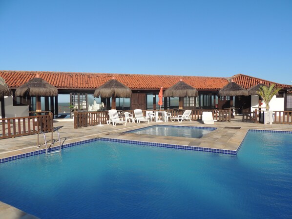 Esta casa de temporada em Búzios tem uma piscina externa e uma quadra de tênis externa.