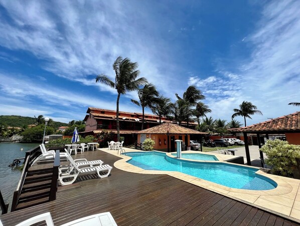 Casa em condomínio com piscina e deck no canal em cabo-frio