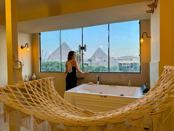 Galeria de fotos de Luxury Front-Row Pyramid View | Steps from GEM & Ancient Wonders