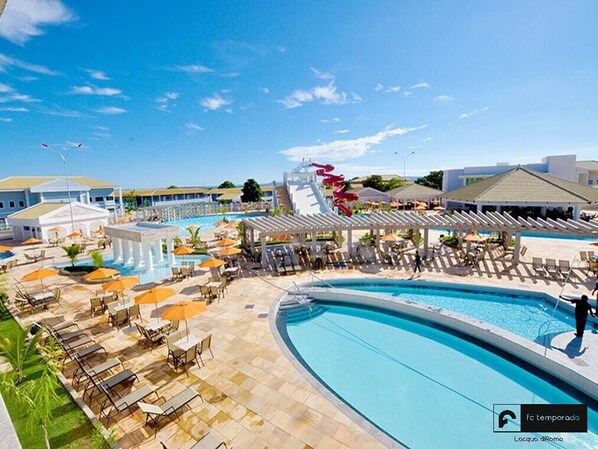 Sim, a propriedade dispõe de 8 piscinas externas e uma piscina infantil.