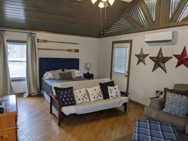 Welcome to our cozy 500 sq ft studio—your perfect getaway near KY Lake and Birdsong Creek! This charming space features a full bathroom, a comfy queen-sized bed, a brand new futon, and blackout curtains to help you sleep in and relax.