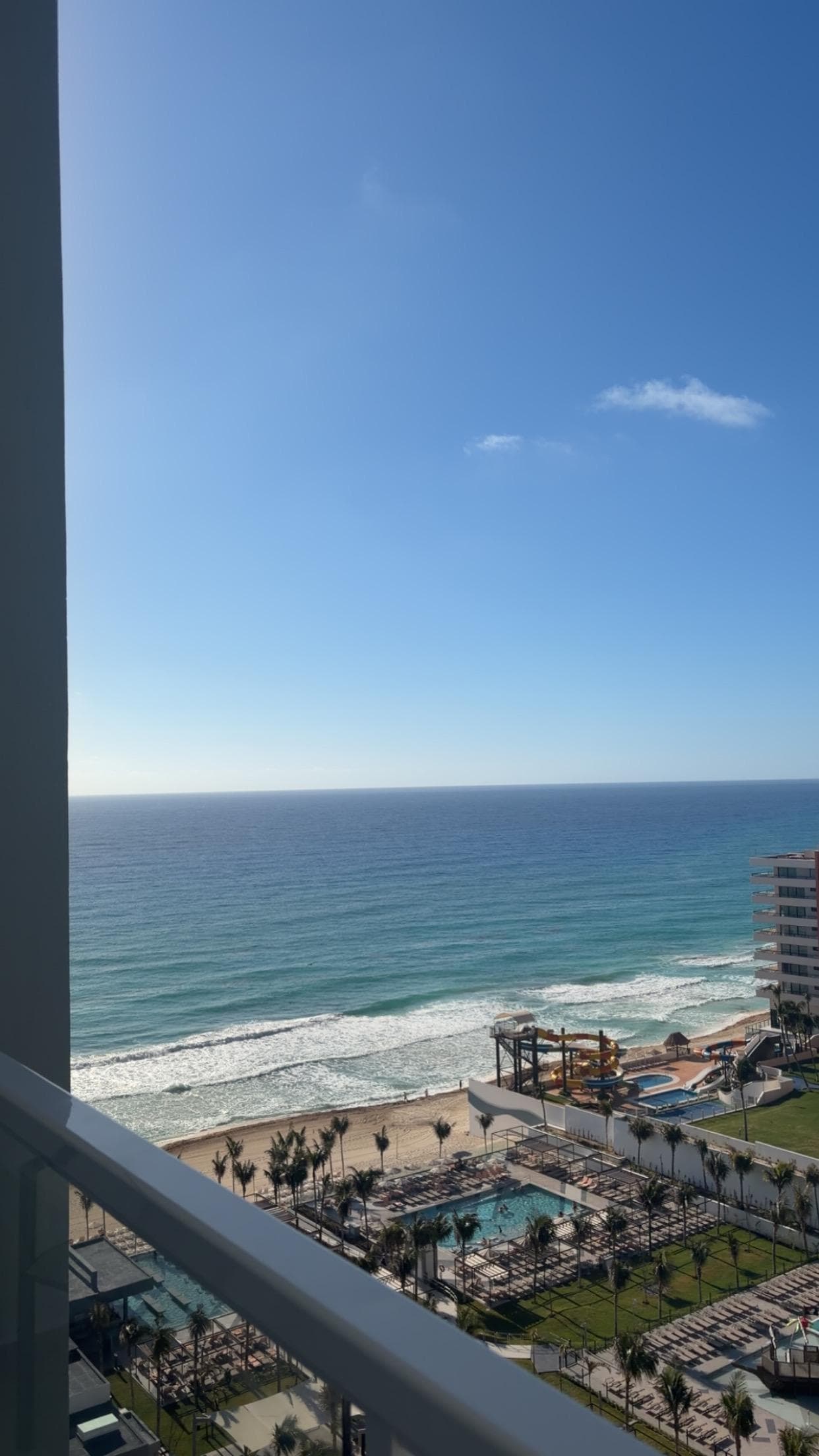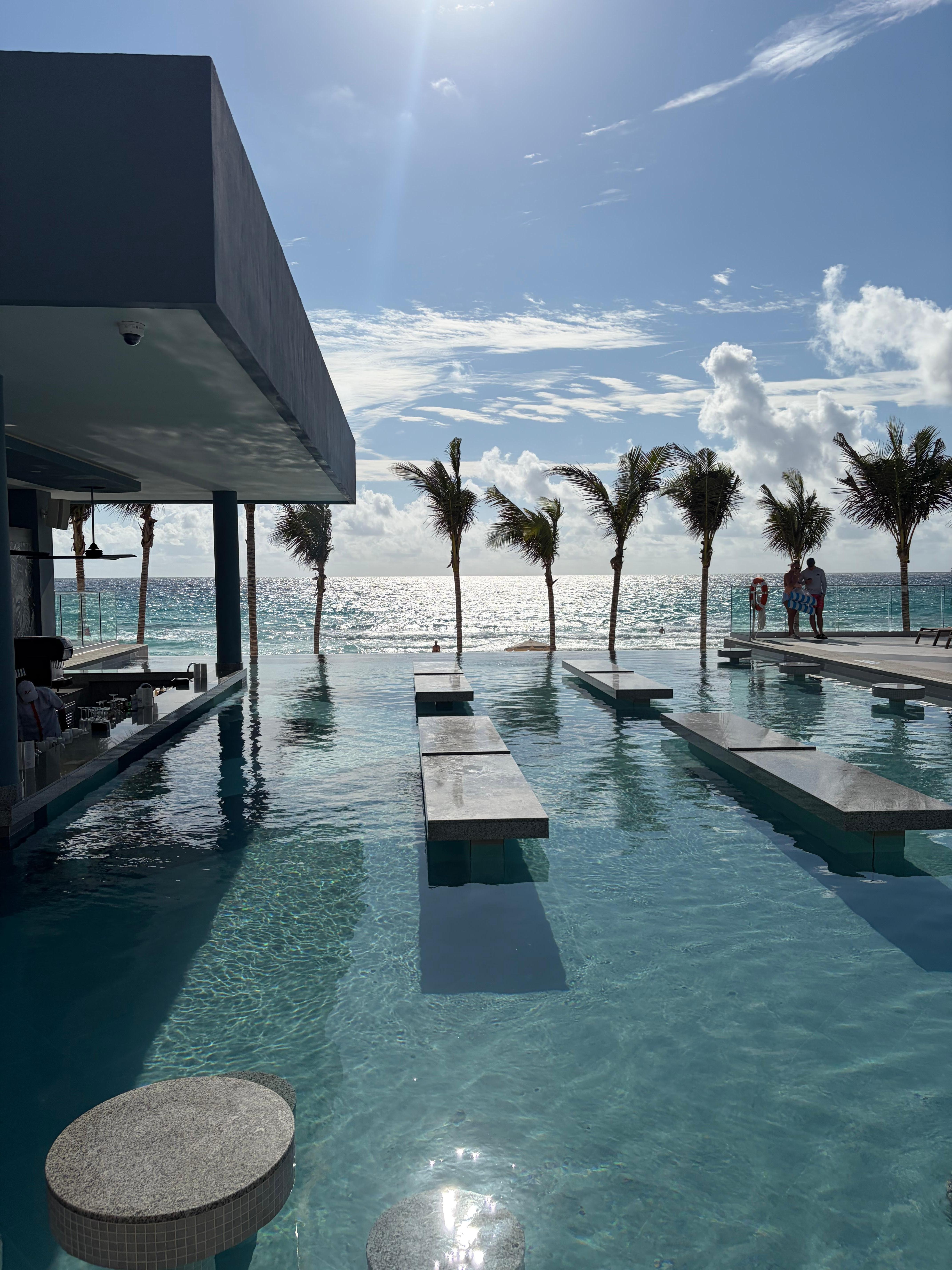 The beach is all right. The waves are a little frequent and there was always a red flag on part of the beach, which is why we recommend going to Riu Caribe for beach. I think more of the pools should be heate, especially that level six pool and oceanfront pool. Staff was very friendly and quick to help. Beautiful location.