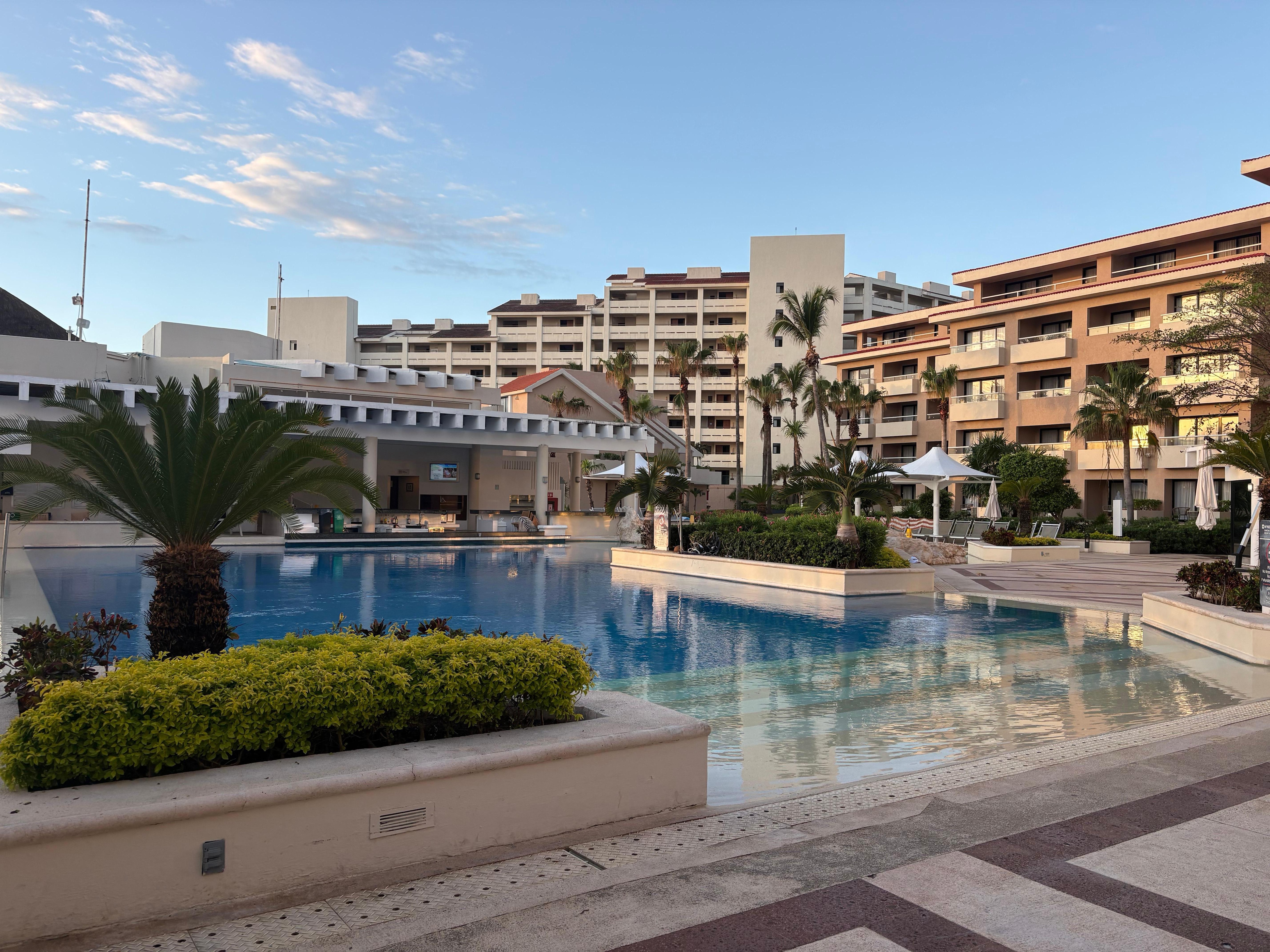 The property is very clean. The staff was very friendly overall but service was hit or miss. Long waits poolside for drinks. Went to one restaurant and waited 20 minutes before walking out as no one ever came to take our order for lunch.