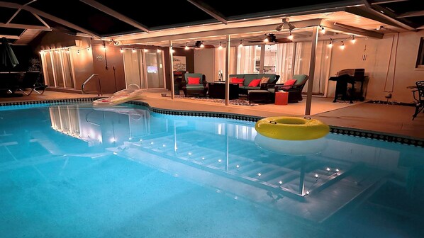 We enjoyed the pool area, the new screened lanai and the view of the canal. Especially appreciated that the house allow pets and their was plenty of furniture outside to relax by the pool. It has a good location near the park and boat ramp. Loved the canal location too. Thanks!