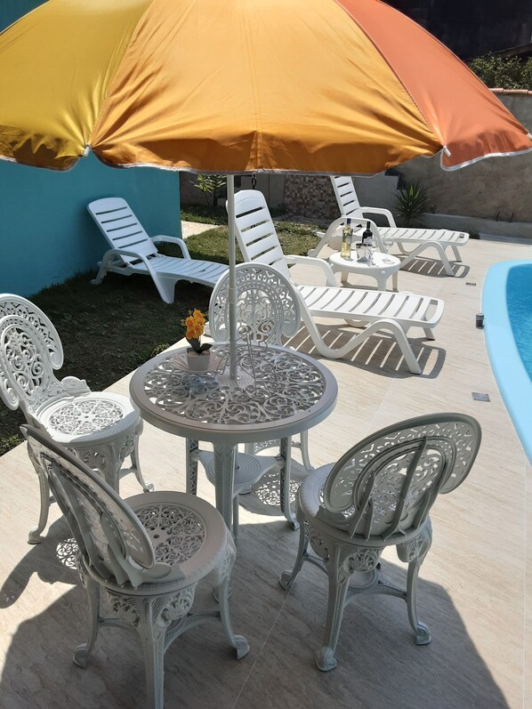 Esta casa de temporada em Caraguatatuba tem uma piscina externa.
