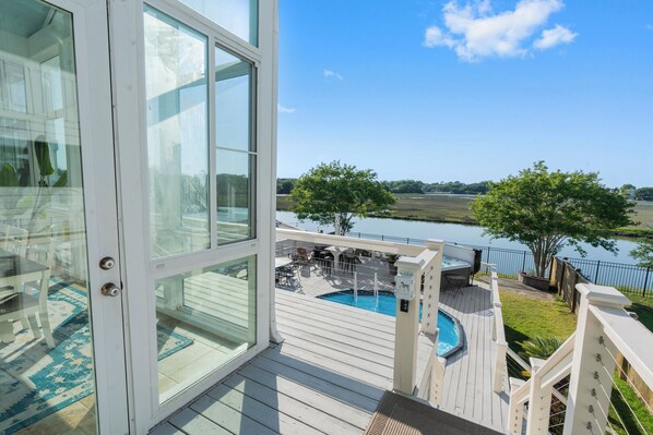 The Lookout- hot tub, heated pool, with marsh view