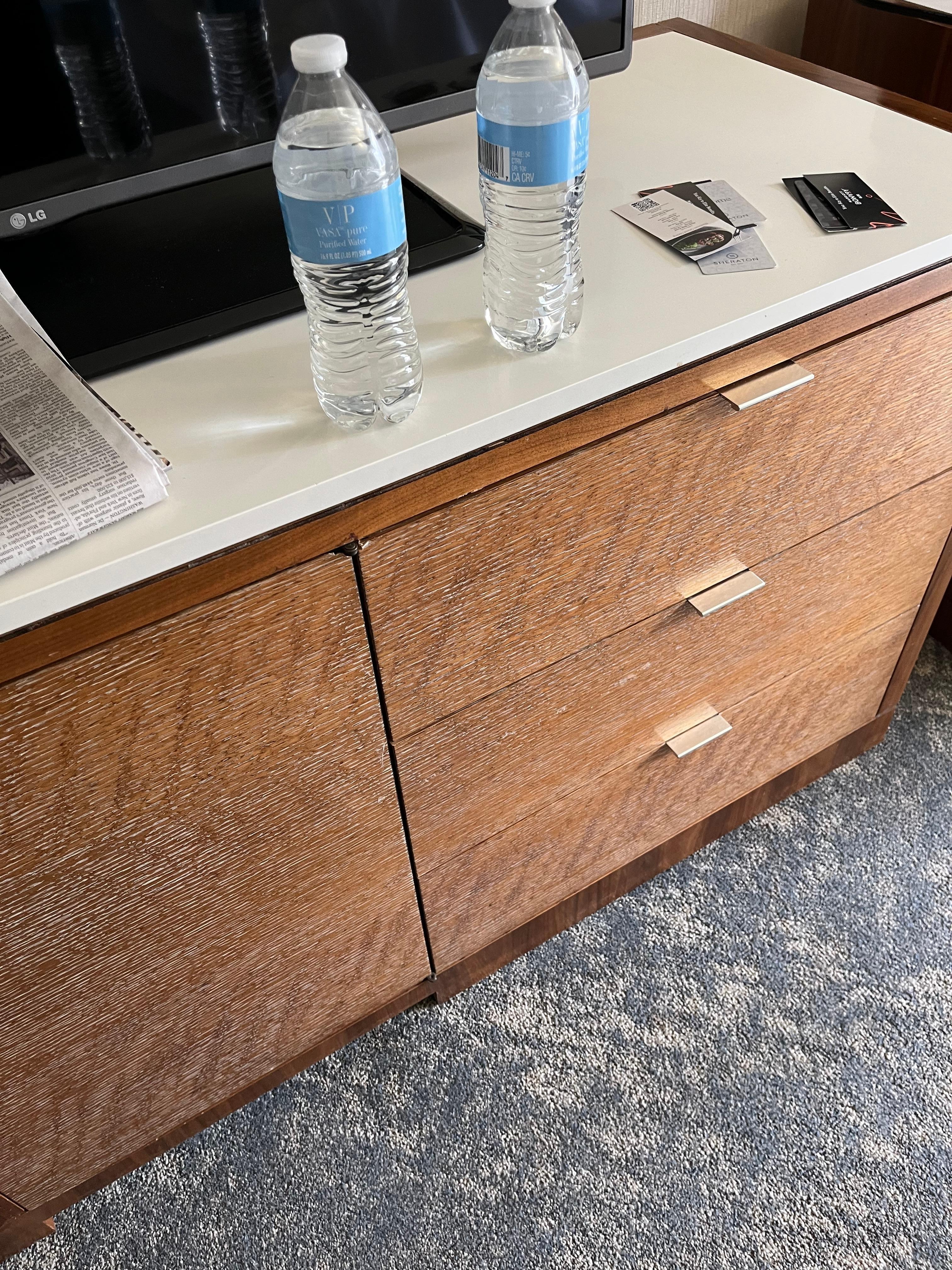 This hotel is in dire need of a renovation. Hotel rooms too small (this was an upgrade!), beds too small, TV- and night stand banged up without even a fresh coat of paint. Bathroom outdated. When somebody takes a shower in an adjacent room, the noise makes you fall out of your bed. Ridiculous resort fee of 30 bucks which covers the WiFi (in this day and age!) and a food voucher of 15 bucks. We invested that in 2 cups of coffee (!). Staff didn’t even apologize when we were locked out of the room despite being granted a late check out.