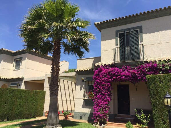 The house is embedded in a small child-safe compound in the beautiful and varied golf course Sancti Petri Hills Golf, the clubhouse of which can be reached on foot. The golf course is not only interesting to play, but also offers affordable green fees with offers of € 25 / € 35 for 18 holes.