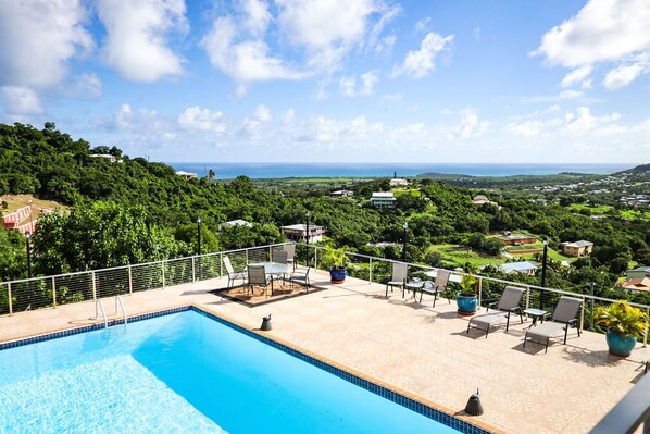 This house is in a great location between a good grocery store and Christiansted. My wife and I arrived on a later flight from the US, which meant that we were 'cutting it close' after stopping for groceries and getting to the house before dark. As is typical of Caribbean islands: driving directions (esp. for the 'last mile') to the house are a little bit sketchy. I submitted an addition to Google Maps (download them ahead of time so you don't need cell service) for the house number. Time will tell on this one. The layout of house is interesting, so I emailed the owner for additional history on the place. He took the time to add some information not already contained in the welcome packet. Nice.Would I stay there again? ABSOLUTELY.Pros, in no particular order:Very nice views from multiple locations.Very private. Also gated.Crazy amount of seating for sunning, etc.Very well stocked with spices for cooking.More than the minimum needed for the first day or so with paper towels, TP, etc.Good Wi Fi.Bluetooth speakers on multiple levels for music, etc.Outstanding sunsets.AC in all BR'sSmart TV available.The Christmas tree was a great touch! :-)Cons:Pool could use a little TLC--the pump was not on much which means the skimmers weren't working most of the time.Yard needed a little mowing.