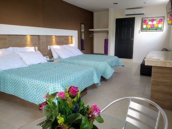 Nice and spacious room located on the second floor of "Casa Paraíso" ,. Equipped with air conditioning, wi-fi, cable TV, two double beds, sofa bed, private bathroom, towels, shampoo, soap, hair dryer, iron and ironing board.