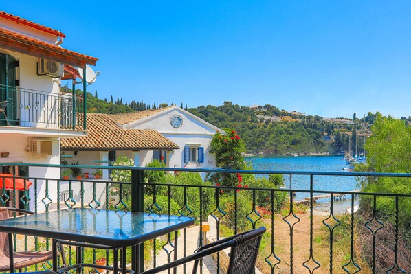 This tranquil two bedrooms apartment offers spectacular balconies with sea-views over Kalami Bay, short proximity to all local facilities and it is not farther than 50 meters from the pebbly beach.