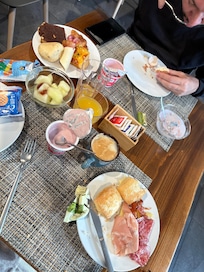 - Taxa de café da manhã com buffet: EUR 12 para adultos e EUR 7 para crianças