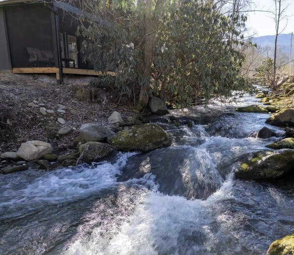 Come and create unforgettable memories at "Grey Goose" – a place where comfort, luxury, and nature converge to provide an unforgettable getaway experience. Book your stay now and let the tranquility of the creek and the charm of the cabin envelop you in serenity.