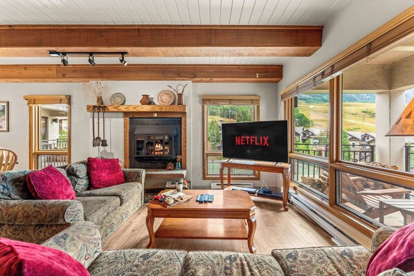 ✔ Sleeps 6, with 2 Bedrooms and Pull out Sofa ✔ Hot Tub (open 365 days/year) ✔ In-Unit washer/dryer ✔ High-Speed Internet Connection ✔ Well stocked Kitchen ✔ Free Shuttle service to town of Crested Butte