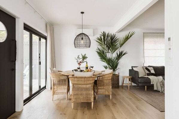 We had a wonderful stay over Christmas. The house is styled beautifully, everything is top quality.The entertaining area out the back is amazing. Location great for the beach, dog walks & cafes. With a second TV room it is also perfect for a third bedroom if needed. Thank you Karly. Hope to return, highly recommend. My only negative is I think a fly screen door on the doorway to the backyard would be great.