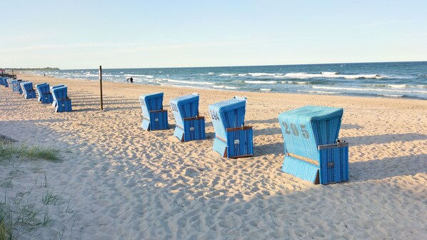 The Nurdachhaus ostseeferien-damp. de is located in a very quiet green area in a 64ha holiday and leisure facility in the Baltic Sea resort Damp. Surrounded by forest, meadows, fields and just a few meters from the Baltic Sea beach, it offers pure relaxation. The house with its approx. 68sqm of living space offers space for max. 5 adults and 1 toddler. On the ground floor of the house is the large living-dining room with a fireplace, a separate kitchen u. a. with electric stove / ceramic hob and oven, dishwasher, microwave and washing machine and a shower room. The 2 bedrooms are upstairs - one room has a double bed (180x200cm) and a single bed (90x200cm), on the 2nd The bedroom has 2 single beds (each 90x200cm). A children's travel bed (70x140cm) is available for a toddler. The sunny, furnished terrace and the opaque, approximately 450 square meter property invite you to relax and unwind. In addition, some bicycles are available free of charge in the lockable shed, there is also a reserved parking space. There is a WiFi connection in the house, which you can book for € 1.50 per day. Bed linen and towels are not included in the rental price and must be brought along.