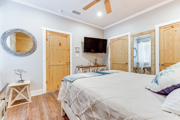 Inviting home near the beach with balcony, full kitchen, central AC, & W/D