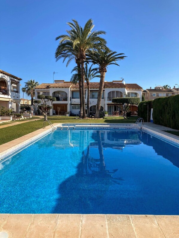Designed for a small family or a couple, first floor apartment in the small group at Retrio Sol with well kept shared garden and beautiful salt water pool with children's shallow end. One of the few areas without high rise buildings in the views. Electronic gate, private safe parking . Fully equipped light open kitchen with breakfast bar for four and dining area for six, white shower room with washing machine. The second bedroom has sliding doors into the live space, black out curtains for bright morning sun. Cheery family apartment with a homely feel. Walking distance to supermarkets, patisserie and bars/restaurants. 20 mins walk to Denia centre or a few minutes by car. Great upmarket shopping, indoor/outdoor food markets, ambient "zen time" cafes and the new yacht marina complex. Denia boasts the most festivals of any spanish town, happy people who welcome children.